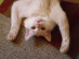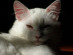 Gata blanca con dos pequeñas manchas negras en la cabeza, según dicen la madre era romana y el padre persa.