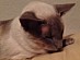 Amy is a Lilac Siamese. She is very ladylike and we call her princess. She is discerning about what she eats and who she likes. She likes playing with long shoelaces and sitting on top of doors.