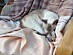 Amy is a Lilac Siamese. She is very ladylike and we call her princess. She is discerning about what she eats and who she likes. She likes playing with long shoelaces and sitting on top of doors.